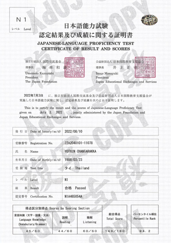 2022年 : 日本語能力試験N1合格